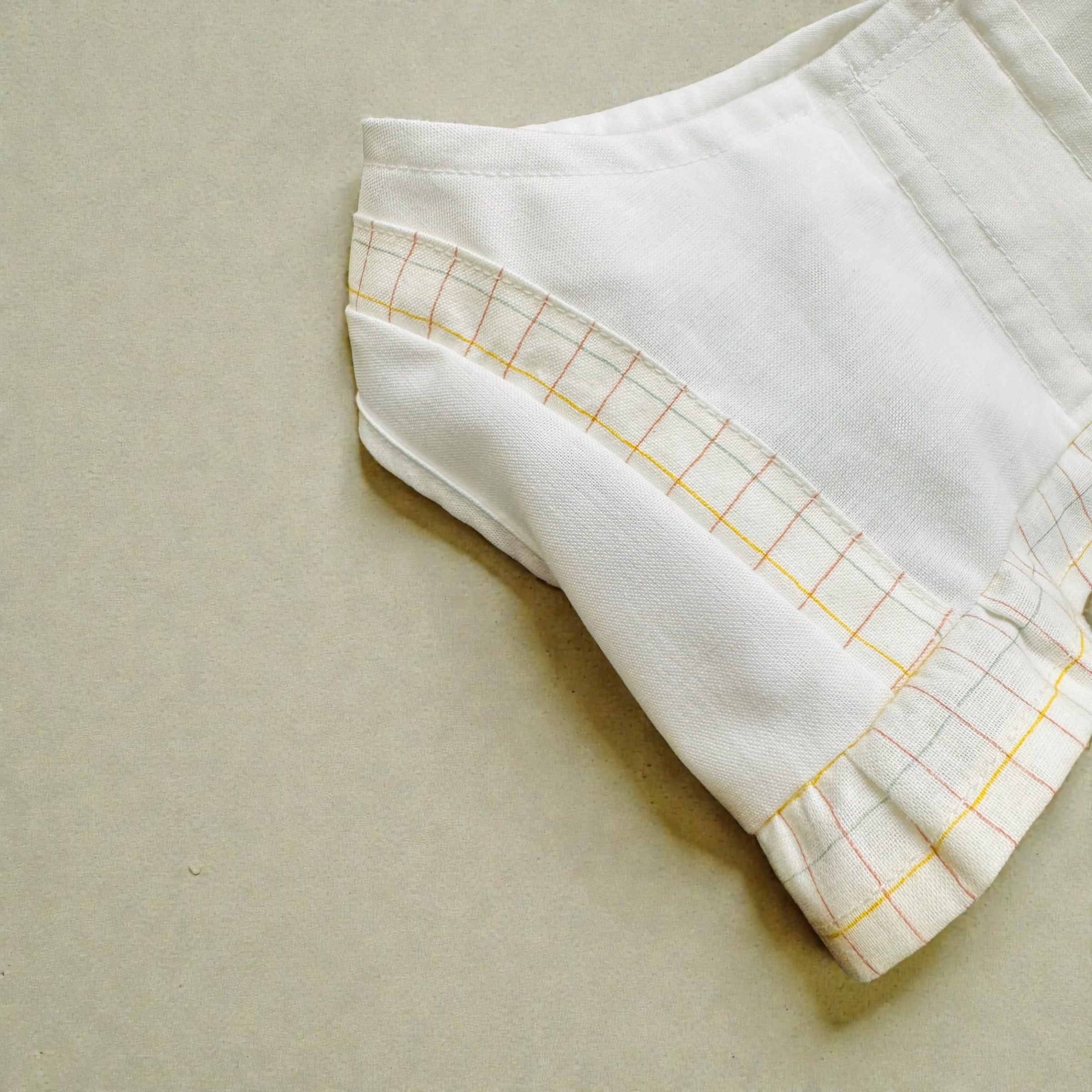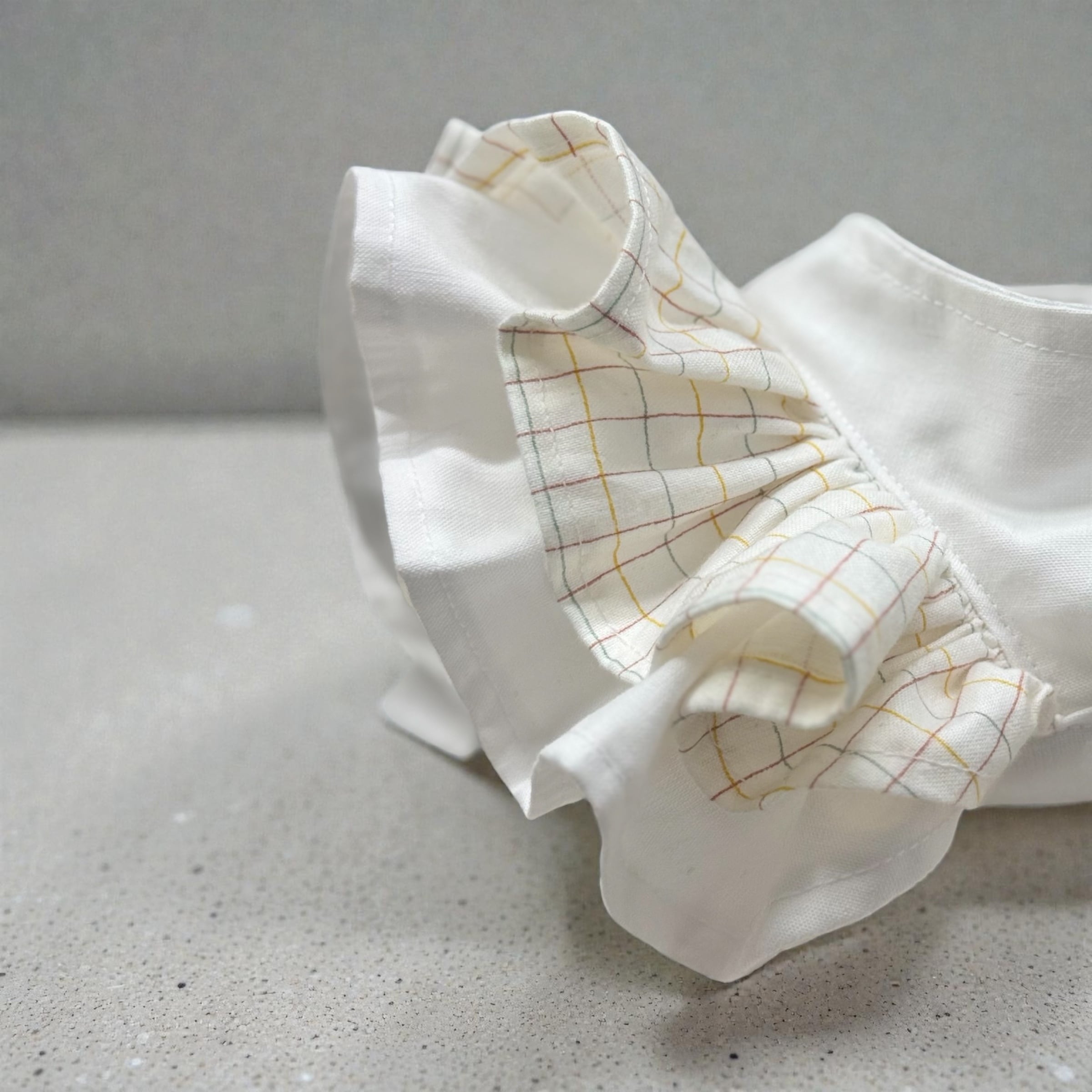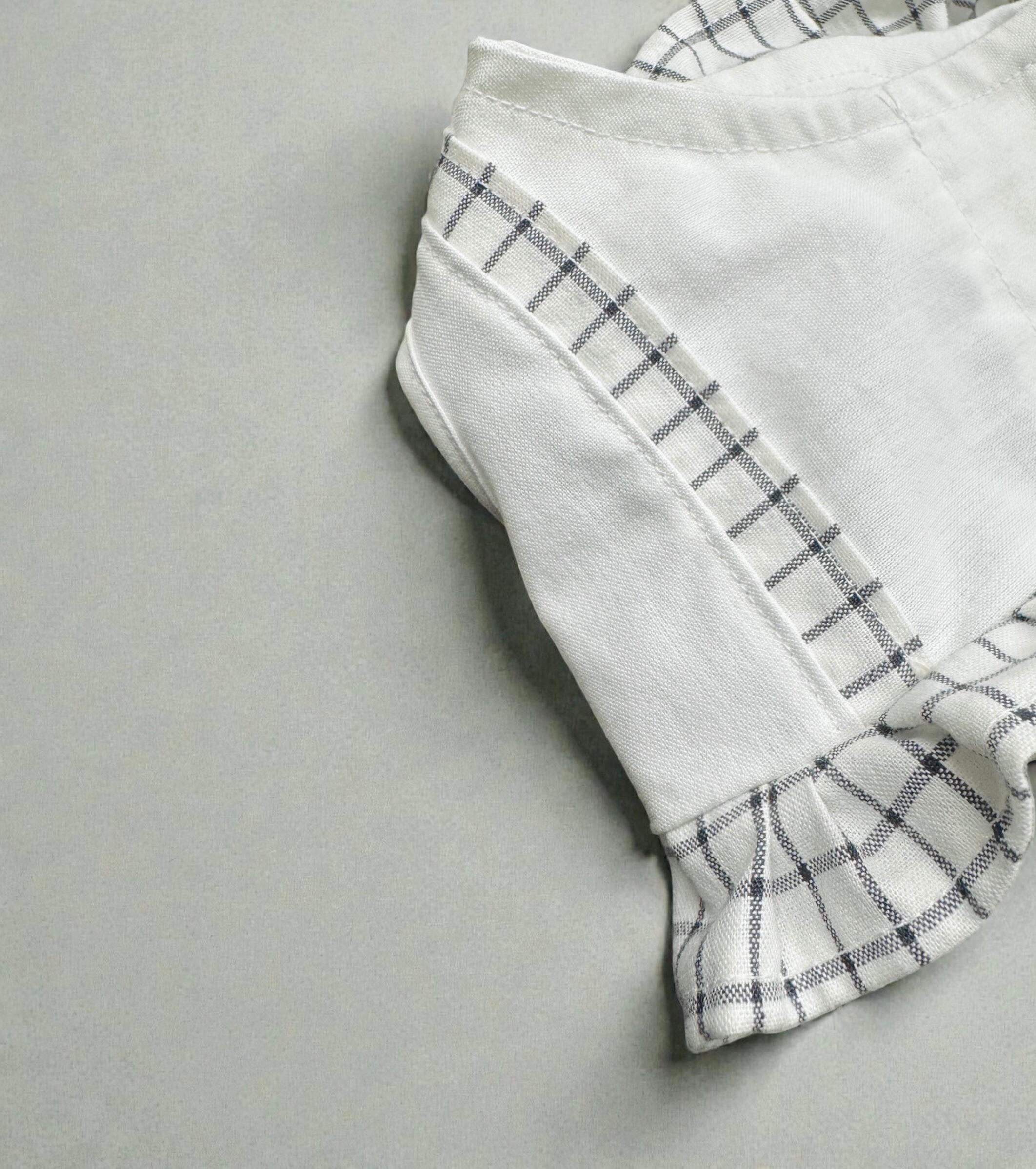 チェック柄とフリルが施されたデザインで、