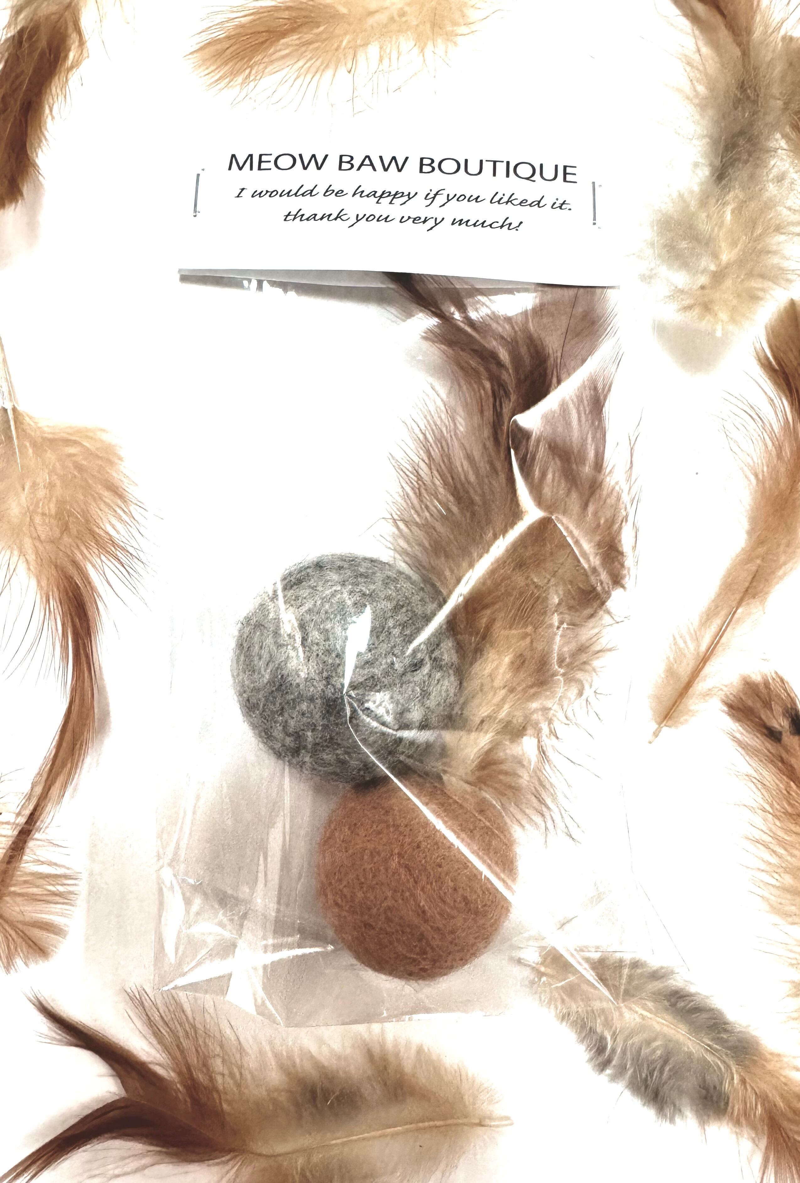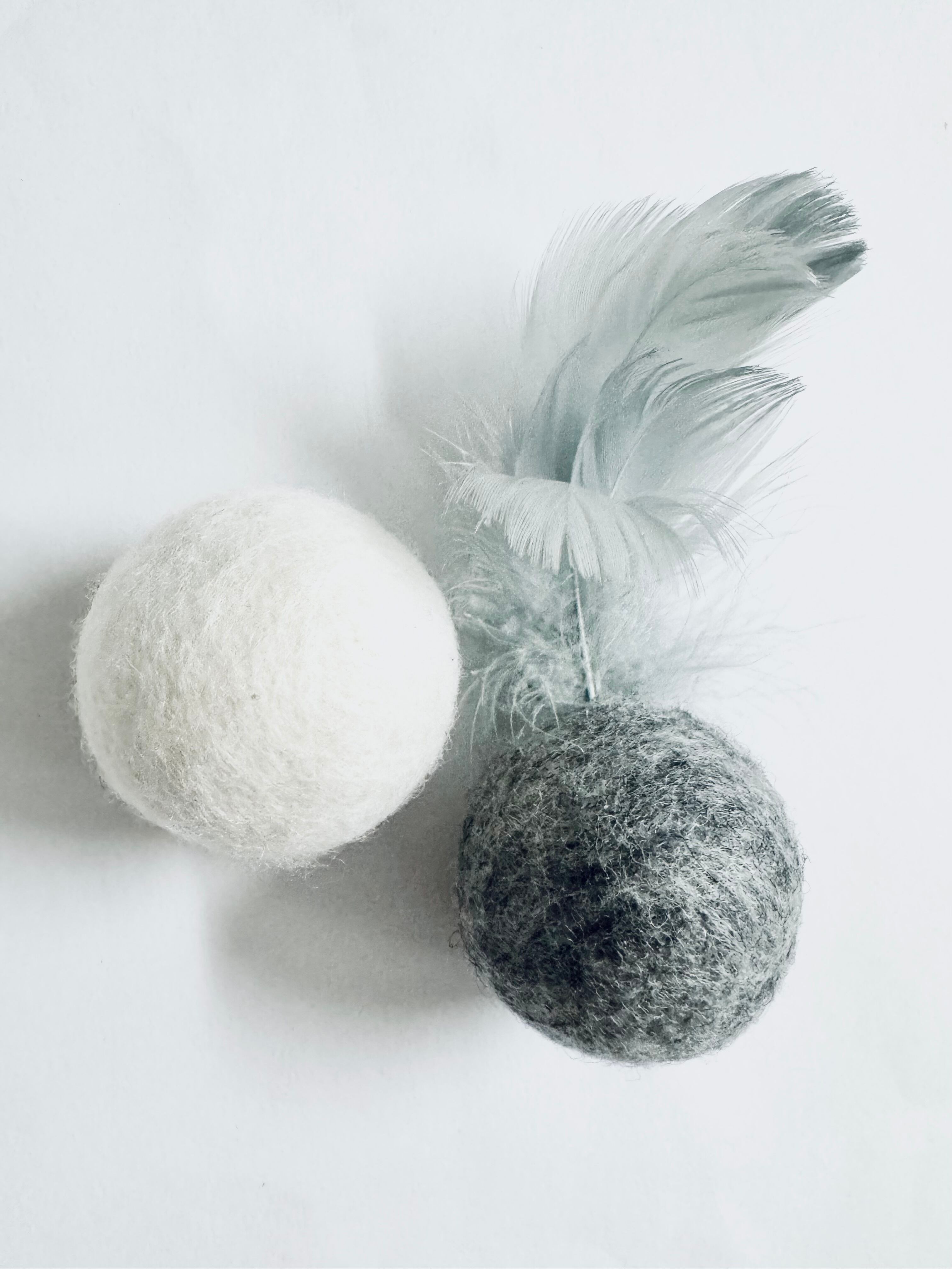 ハンドメイド 2個セット 猫 おもちゃ シンプル 羽つき羊毛ボール