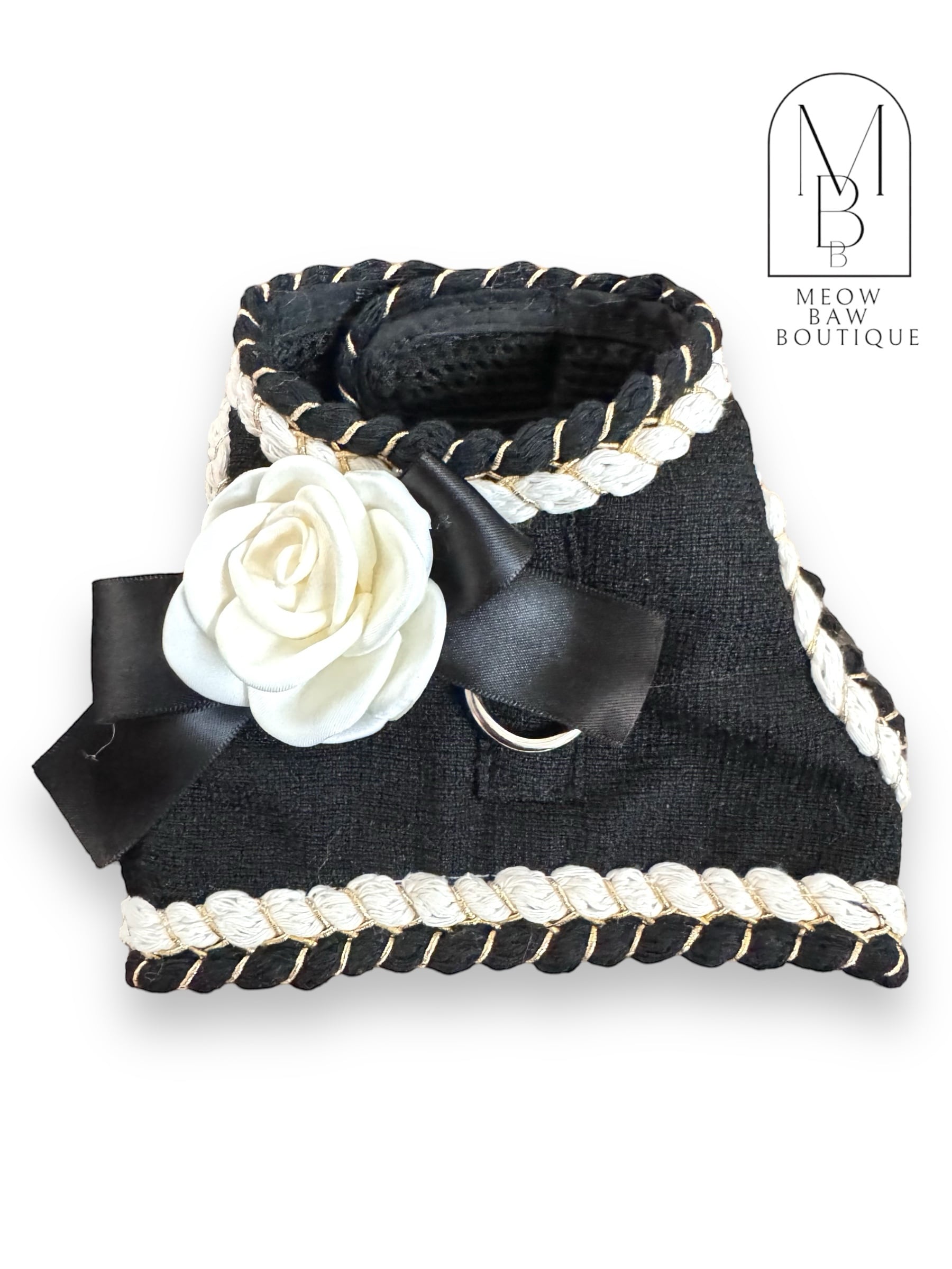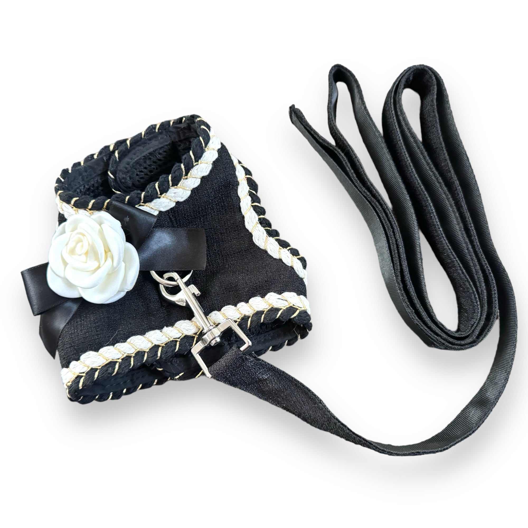 リード付きフラワーコサージュ モノトーンベスト 犬 猫 ペット