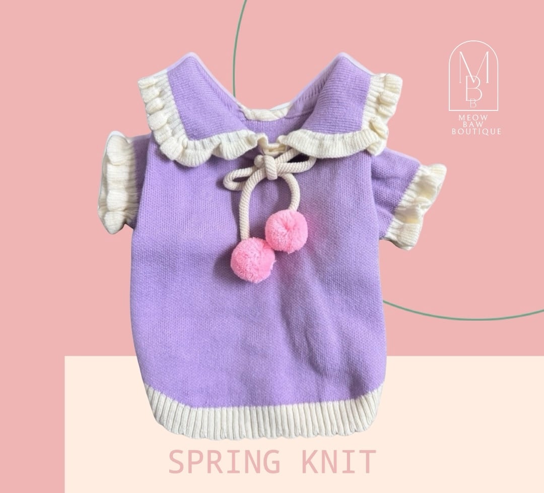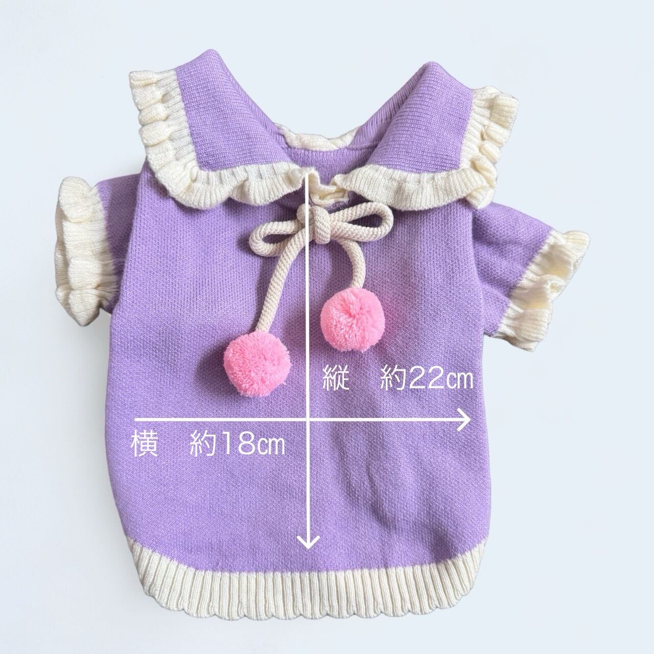 ピンクのポンポンつき パープルニットセーター 犬 猫