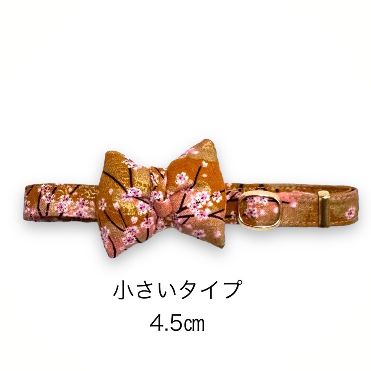 ハンドメイド ブラウン 小さいサイズ(4.5㎝) 和風 リボン 首輪 犬 猫 桜