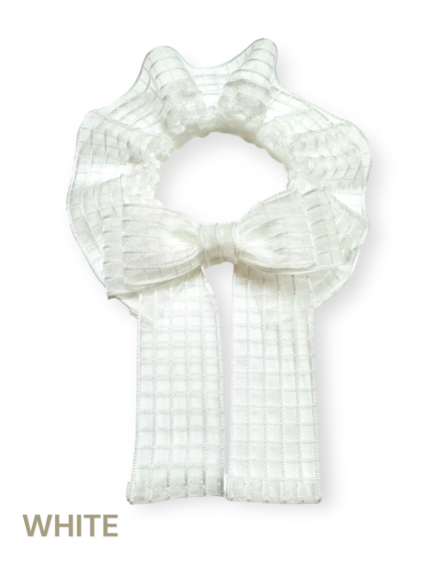 再販!ハンドメイド WHITE 犬 猫 シースルーリボンシュシュ