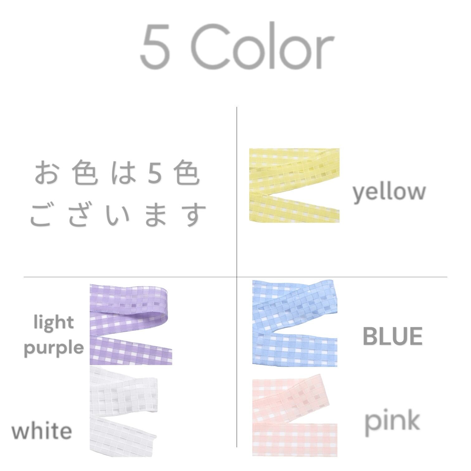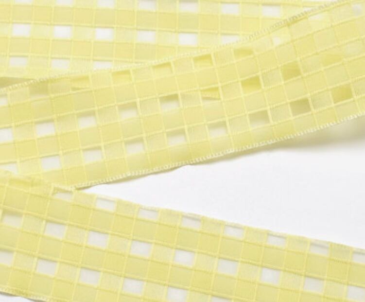 チュール素材に、密度の違う糸が編み込まれたシアー素材のブロックチェック柄リボン。